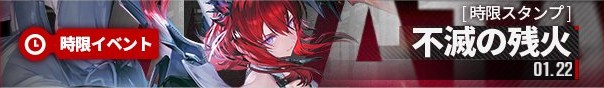 ![]() 不滅の残火 ◆「物語イベント」参加条件 メイン任務第一章プロセスⅢ「時代揺籠」を完了 | ◆時限スタンプ 1月22日(木)~2月7日(土) ◆物語イベント 常設 |
