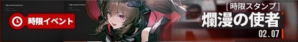 ![]() 爛漫の使者 ◆「物語イベント」参加条件 メイン任務第一章プロセスⅣ「四方会議」を完了 | ◆時限スタンプ 2月7日(土)~2月24日(火) ◆物語イベント 常設 |