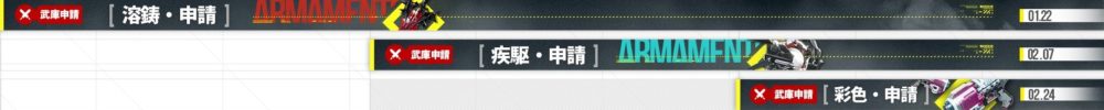 武庫申請では、PUキャラ「レーヴァテイン」「ギルベルタ」「イヴォンヌ」3名のモチーフ武器がピックアップされます。武庫申請はゲーム内メニュー⇒購買部⇒武庫交換所から確認できます。