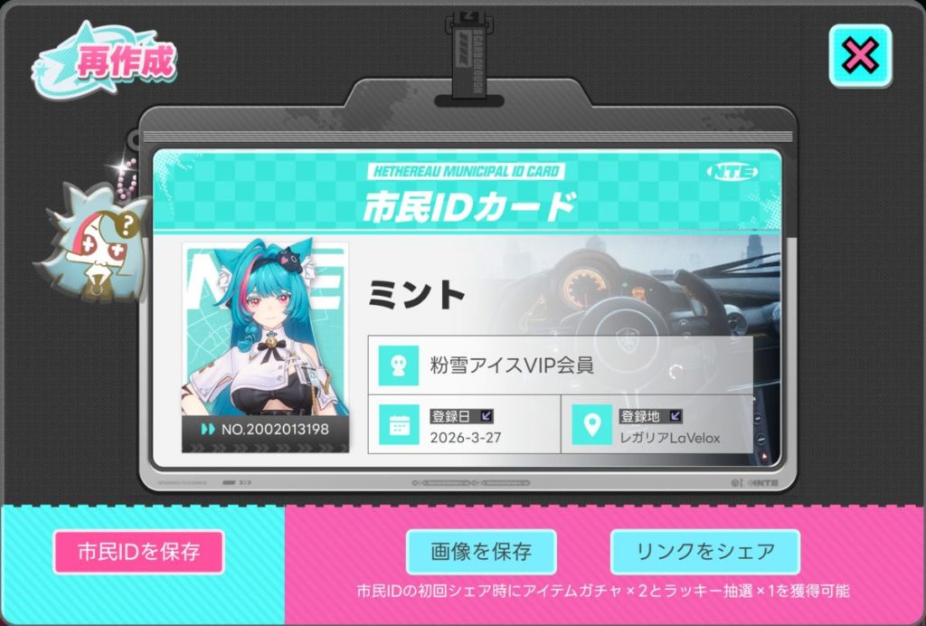 市民IDを作成&シェアアイテムガチャ+2回、ラッキー抽選+1回